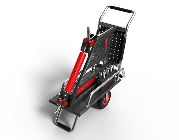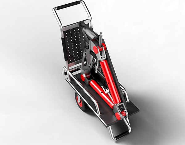 1. 车体采用框架式结构设计,,粗犷简洁,,,,整体宽度为370mm,,方便了现场狭小空间的存放和推拉,,,倾斜的把手设计便于现场工人的使用。。